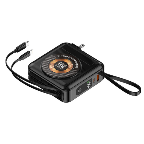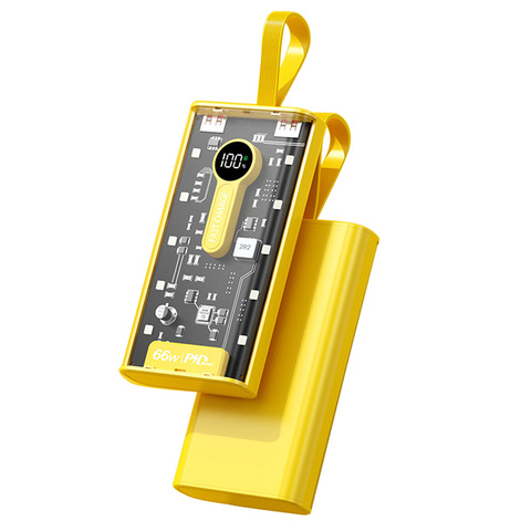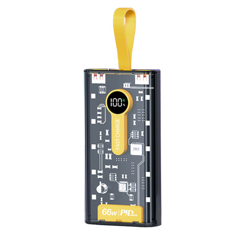 Taşınabilir şarj cihazı 10000mah pd taşınabilir şarj cihazı dahili kordon, el feneri ile 20000mAh şeffaf harici pil paket