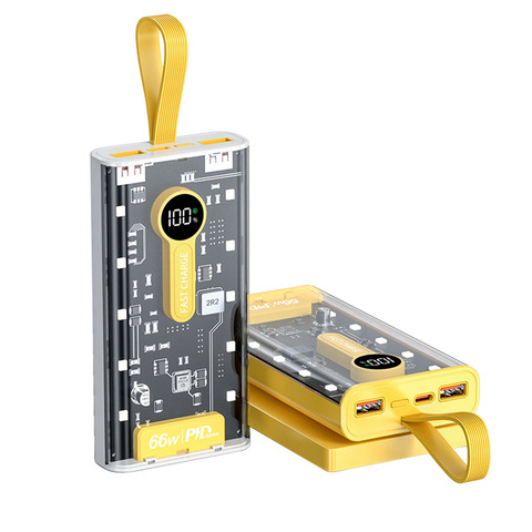 Punk tarzı 10000mAh şeffaf güç banka 66w süper hızlı şarj led 20000 ile dijital ekran mAh mobil güç şarj